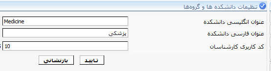 | تنظیمات عمومى پایگاه | تنظیمات زبان پایگاه | تنظیم زبان پایگاه شامل فعال بودن زبانهای فارسی و انگلیسی و پیوندهای مربوطه |