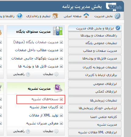 2- به بخش مدیریت نسخههاى نشریه وارد شوید و روی لینک افزودن نسخه جدید کلیک کنید تا فرم ساخت نسخه جدید را ببینید.