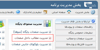 در بسیاری از بخش های برنامه مثل مدیریت صفحات یا مدیریت مطالب لینک مشاهده