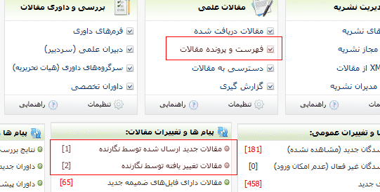 - با تنظیم پیش فرض برنامه، نگارنده به پرونده مقاله دسترسی دارد و می تواند وضعیت مقاله خود را رهگیری کند.